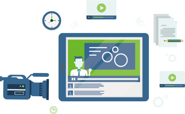 出演者の講義シーンを撮影・編集。弊社スタジオで撮影する「スタジオ撮影プラン」と「出張撮影プラン」の2プラン。